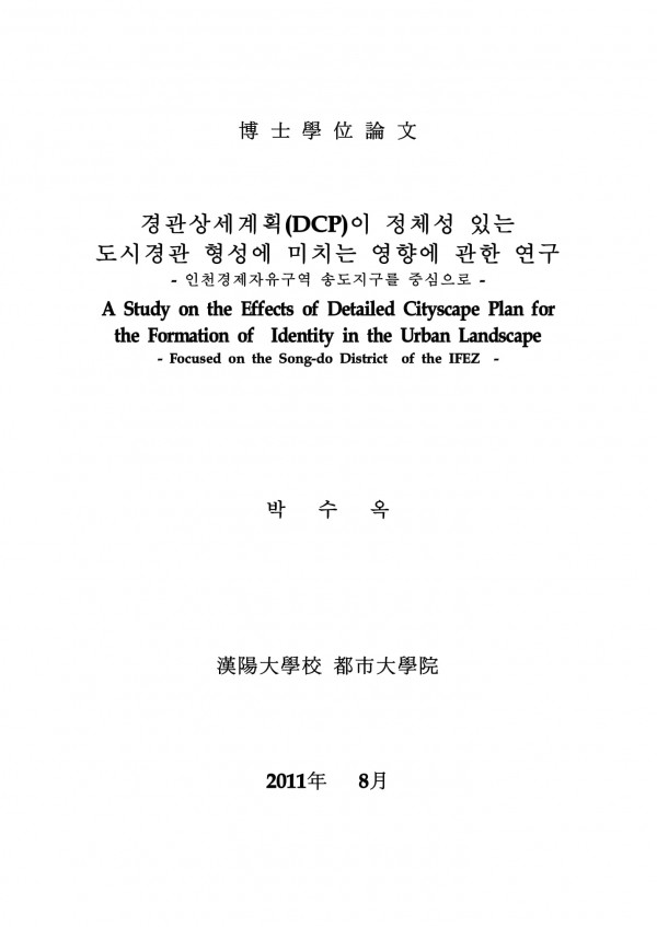 경관상세계획(DCP)이 정체성 있는 도시경관 형성에 미치는 영향에 관한 연구 > thesis
