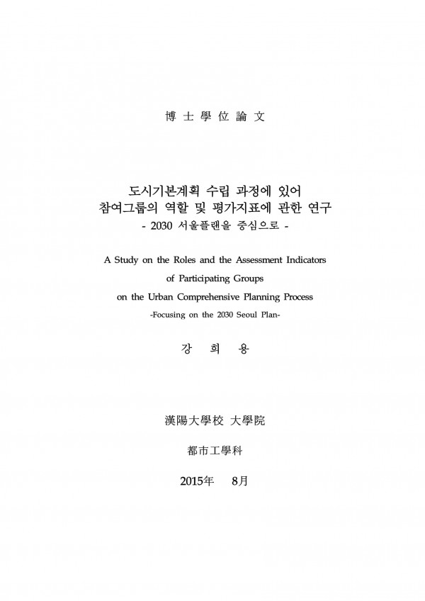 도시기본계획 수립 과정에 있어 참여그룹의 역할 및 평가지표에 관한 연구 > thesis