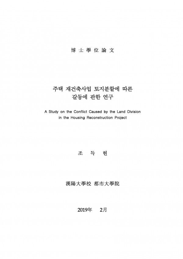 주택 재건축사업 토지분할에 따른 갈등에 관한 연구 > thesis
