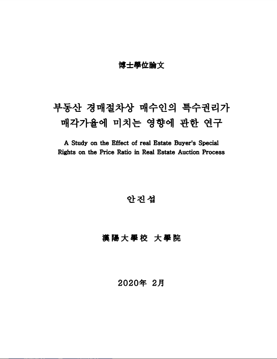 부동산 경매절차상 매수인의 특수권리가 매각가율에 미치는 영향에 관한 연구 > thesis