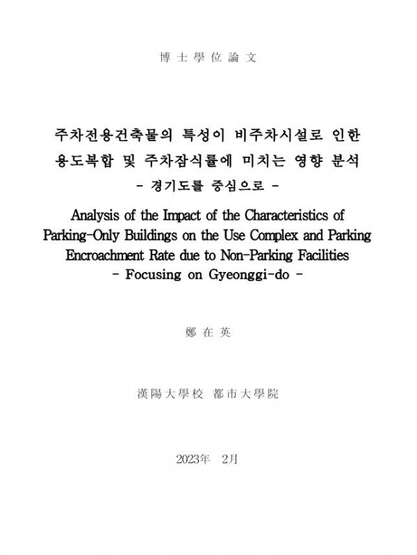 페이지 정보 본문 [주차전용건축물의 특성이 비주차시설로 인한 용도복합 및 주차잠식률에 미치는 영향 분석 : 경기도를 중심으로] 정재영(2023) 박사학위논문 관련링크 이전글 다음글 목록