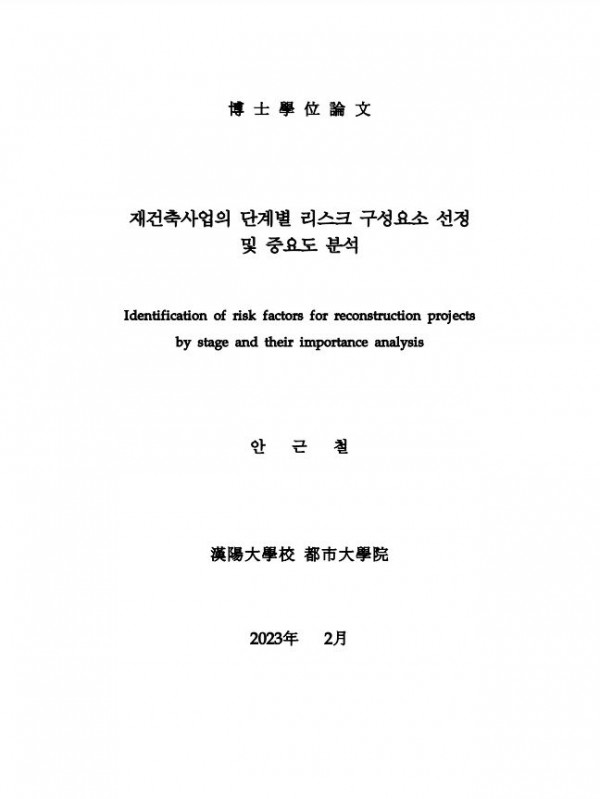 재건축사업의 단계별 리스크 구성요소 선정 및 중요도 분석 > thesis