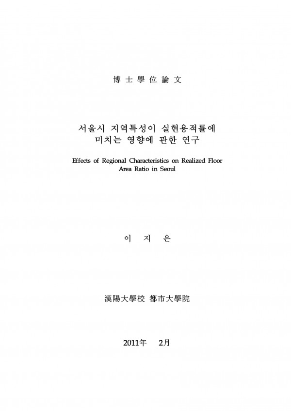 서울시 지역특성이 실현용적률에 미치는 영향에 관한 연구 > thesis