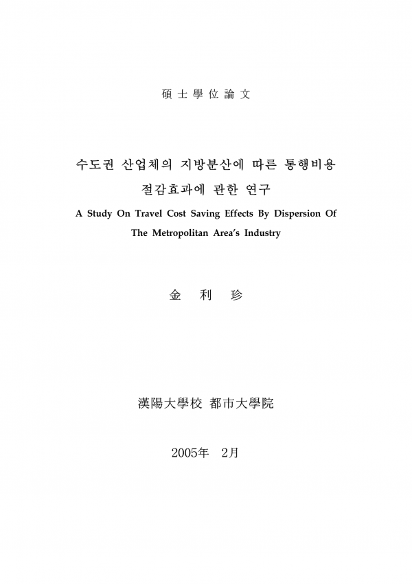 수도권 산업체의 지방분산에 따른 통행비용 절감효과에 관한 연구 > thesis_master