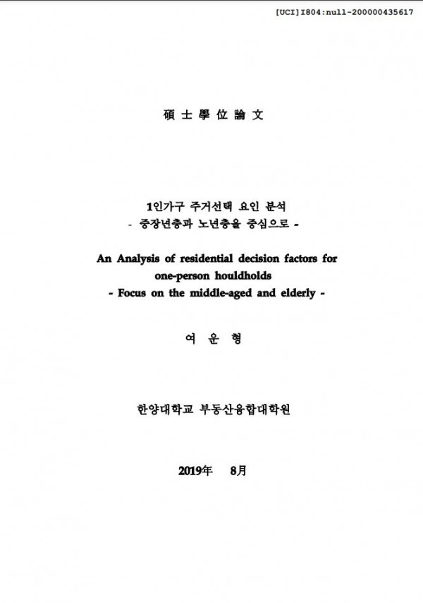 1인가구 주거선택 요인 분석 -중장년층과 노년층을 중심으로- > thesis_master