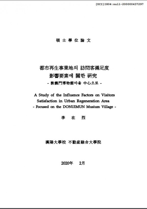 도시재생사업지의 방문객만족도 영향요소에 관한 연구 : 돈의문박물관마을 중심으로 > thesis_master