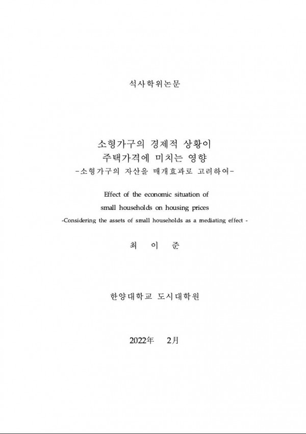 소형가구의 경제적 상황이 주택가격에 미치는 영향 -소형가구의 자산을 매개효과로 고려하여- > thesis_master