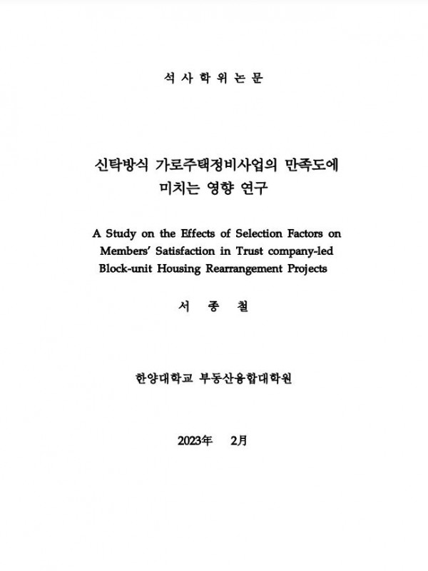 신탁방식 가로주택정비사업의 만족도에 미치는 영향 연구 > thesis_master