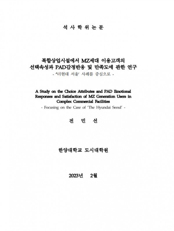 페이지 정보 본문 [복합상업시설에서 MZ세대 이용고객의 선택속성과 PAD감정반응 및 만족도에 관한 연구 : '더현대 서울' 사례를 중심으로] 전민선(2023) 석사학위논문 관련링크 이전글 다음글 목록