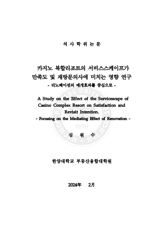 페이지 정보 본문 [카지노 복합리조트의 서비스스케이프가 만족도 및 재방문의사에 미치는 영향 연구 : 리노베이션의 매개효과를 중심으로] 심원수(2024) 석사학위논문 관련링크 이전글 다음글 목록