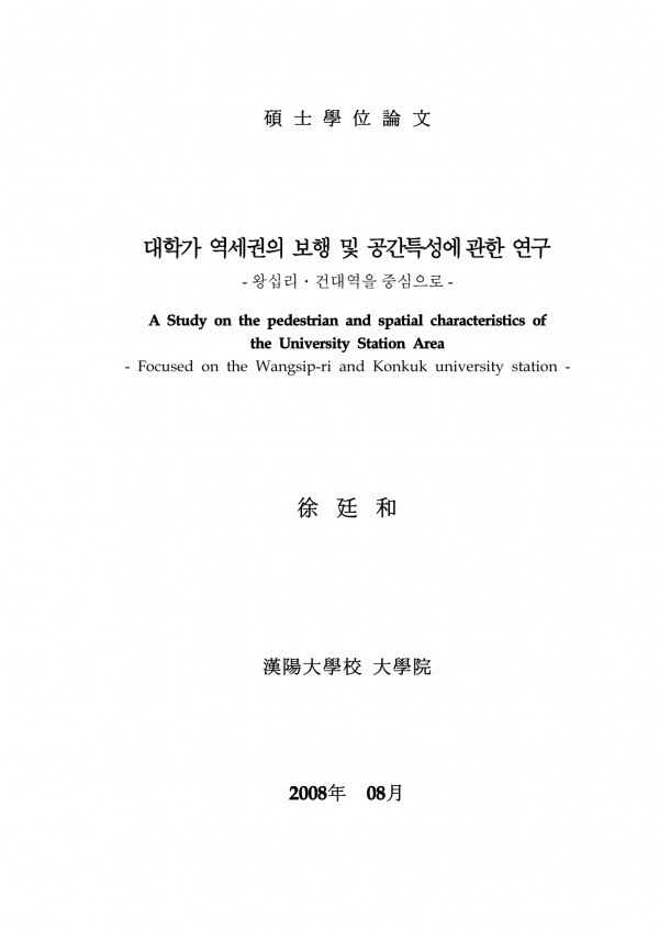 대학가 역세권의 보행 및 공간특성에 관한 연구 왕십리·건대역을 중심으로 > thesis_master