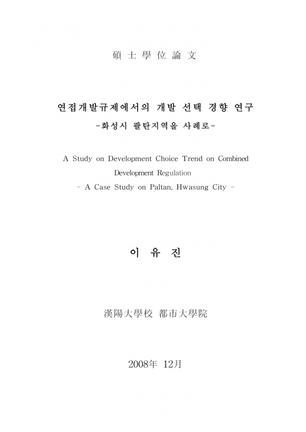 연접개발규제에서의 개발 선택 경향 연구 -화성시 팔탄지역을 사례로 > thesis_master