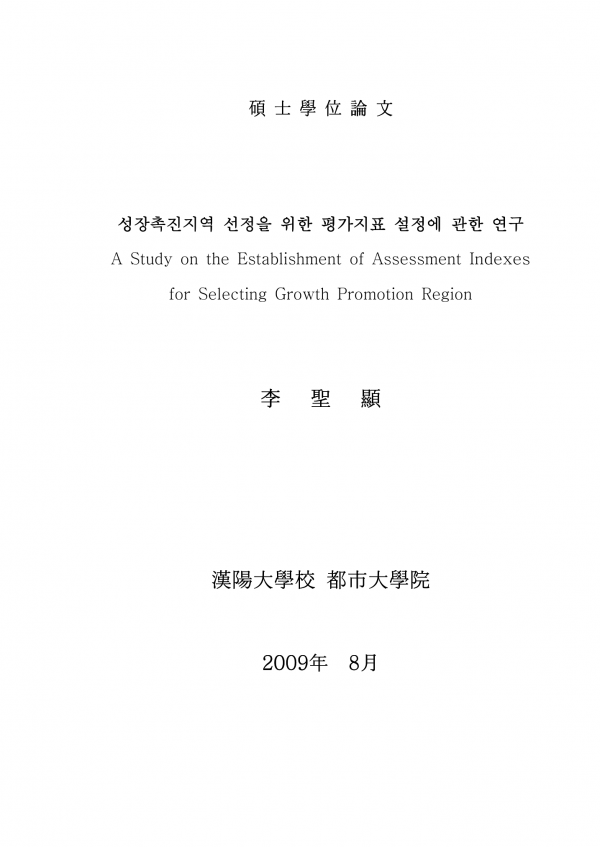 성장촉진지역 선정을 위한 평가지표 설정에 관한 연구 > thesis_master