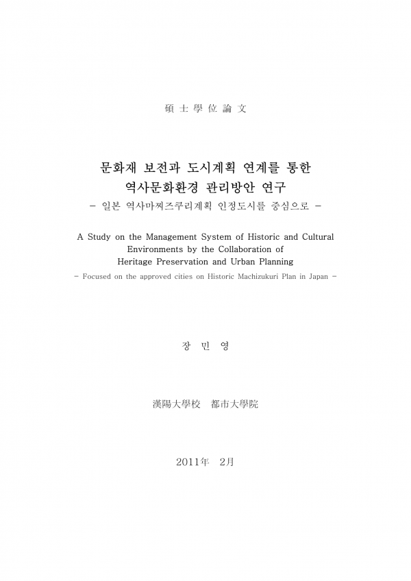 페이지 정보 본문 [문화재 보전과 도시계획 연계를 통한 역사문화환경 관리방안 연구 - 일본 역사마찌즈쿠리계획 인정도시를 중심으로] 장민영(2011) 석사학위논문 관련링크 이전글 다음글 목록