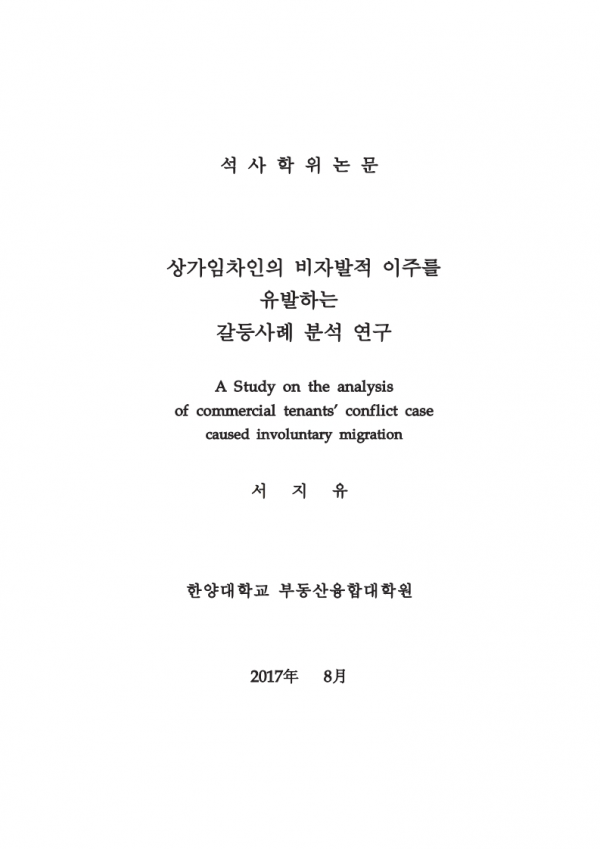 상가임차인의 비자발적 이주를 유발하는 갈등사례 분석 연구 > thesis_master