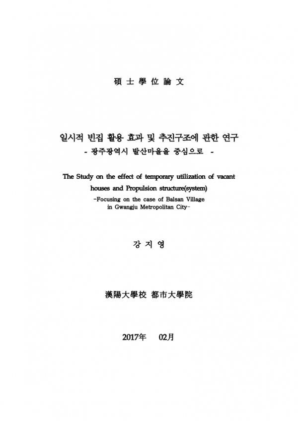 일시적 빈집 활용 효과 및 추진구조에 관한 연구 광주광역시 발산마을을 대상으로 > thesis_master