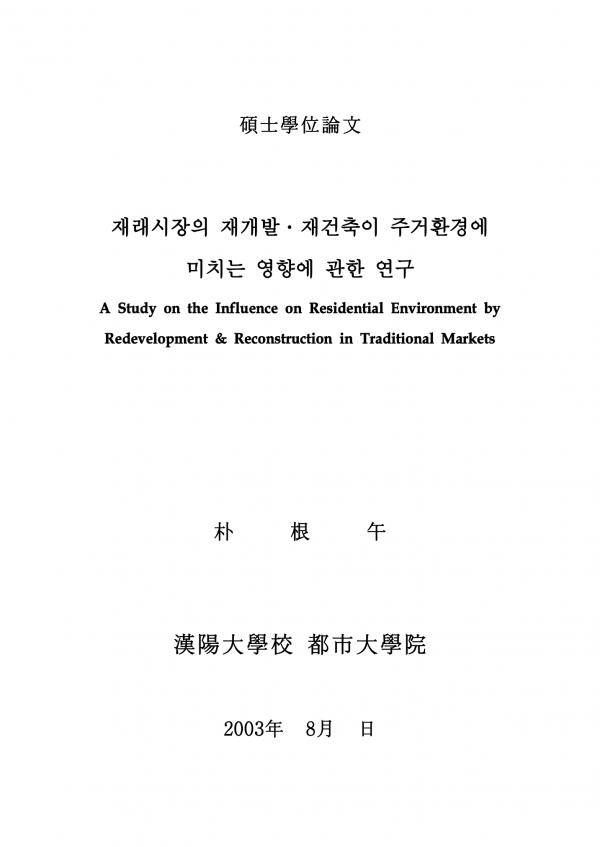 재래시장의 재개발·재건축이 주거환경에 미치는 영향에 관한 연구 > thesis_master
