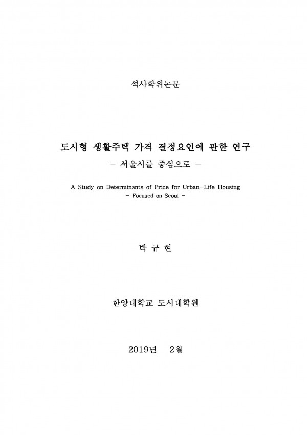 도시형 생활주택 가격 결정요인에 관한 연구 : 서울시를 중심으로 > thesis_master